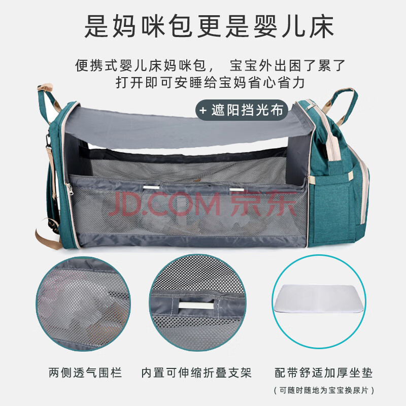 商品相册:9i9妈咪包婴儿折叠床双肩包背奶包可躺多功能外出包A330雅灰第
