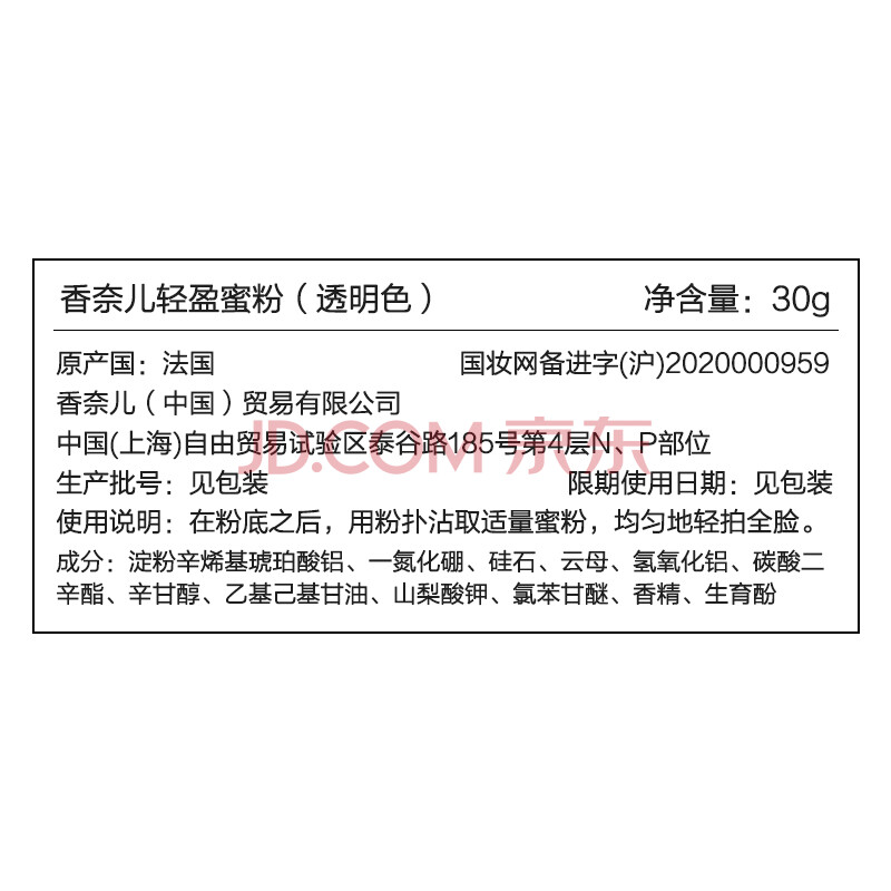 商品相册:香奈儿(Chanel)轻盈蜜粉(透明色10)30g定妆散粉清透不卡粉生日礼物送女友送老婆第1张/共4