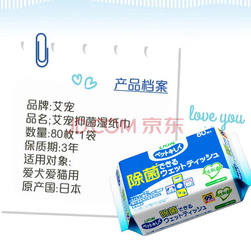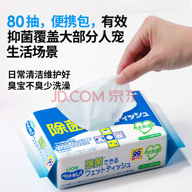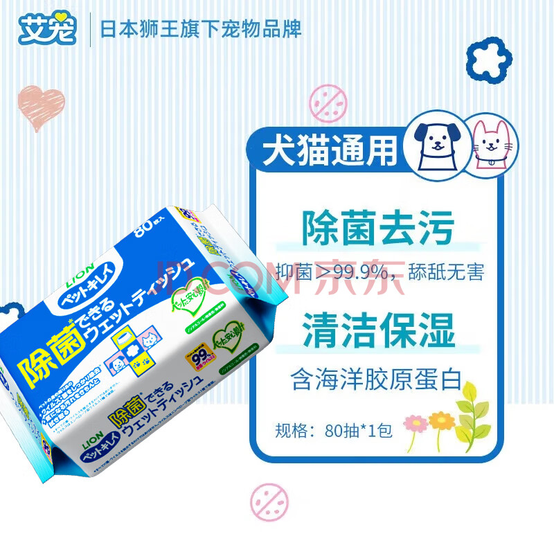 商品相册:狮王艾宠除菌湿纸巾80片*1包猫狗用除菌除味泪痕第