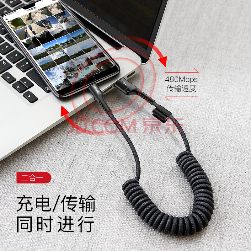 商品相册:倍思 type-c数据线快充 车载弹簧伸缩充电线适用华为/荣耀/小米/三星/vivo/oppo安卓手机第