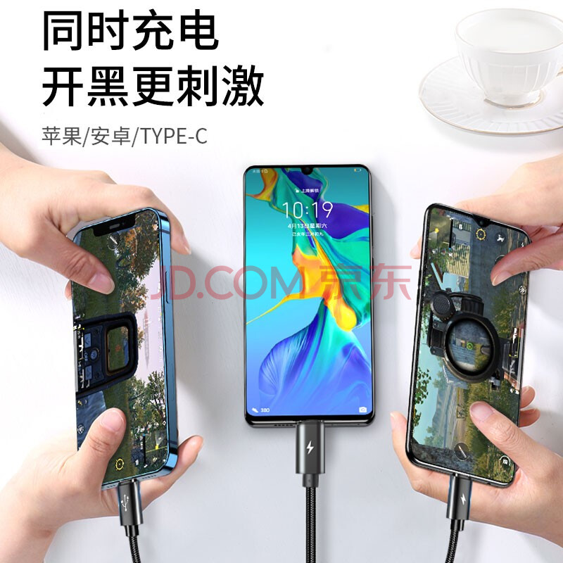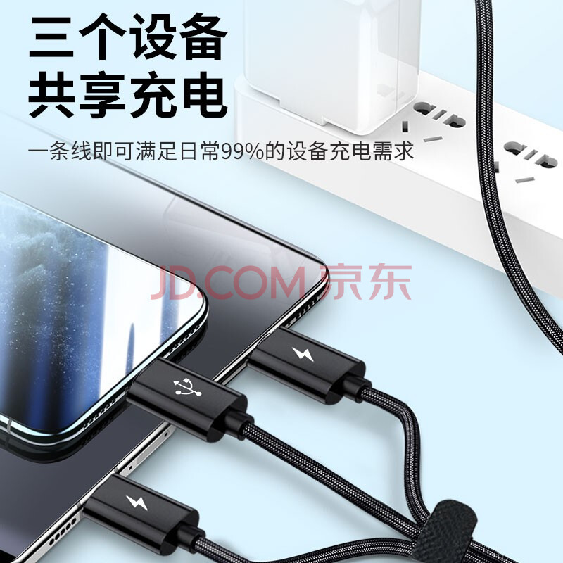 商品相册:KOOLIFE数据线三合一 苹果安卓手机充电器线一拖三头分车载多功能USB/Type-c二合一3双接口快充线通用华为第