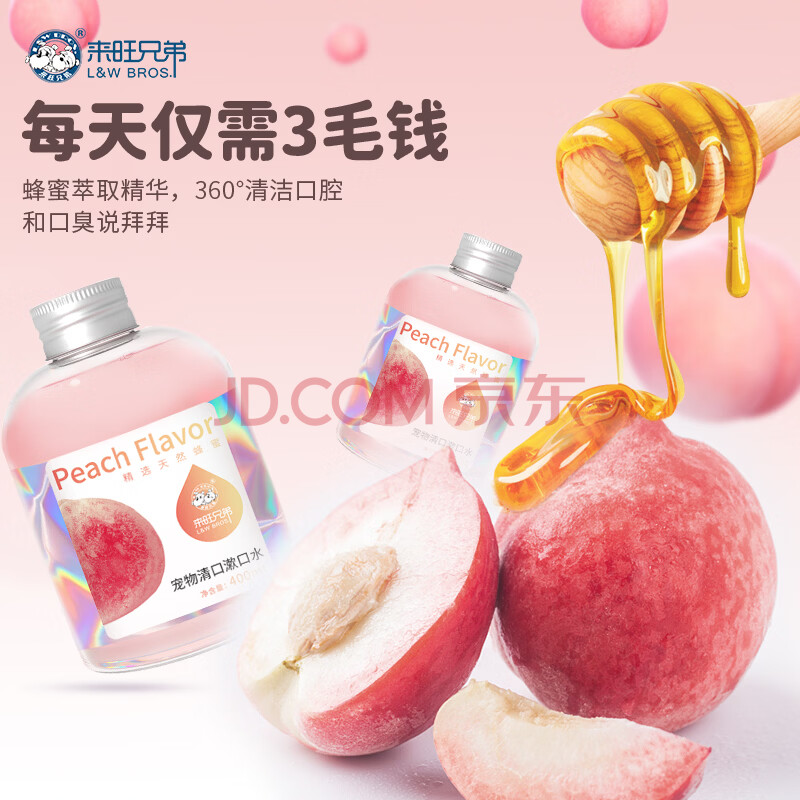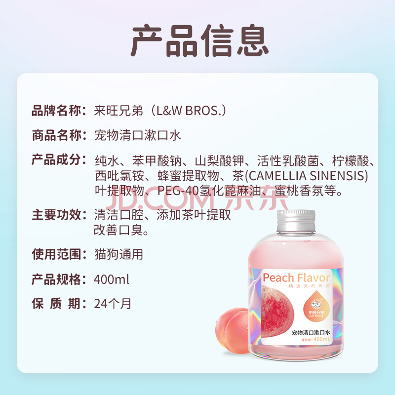 商品相册:来旺兄弟狗狗洁齿水400mL免刷牙祛口臭宠物漱口水防牙结石可食用第