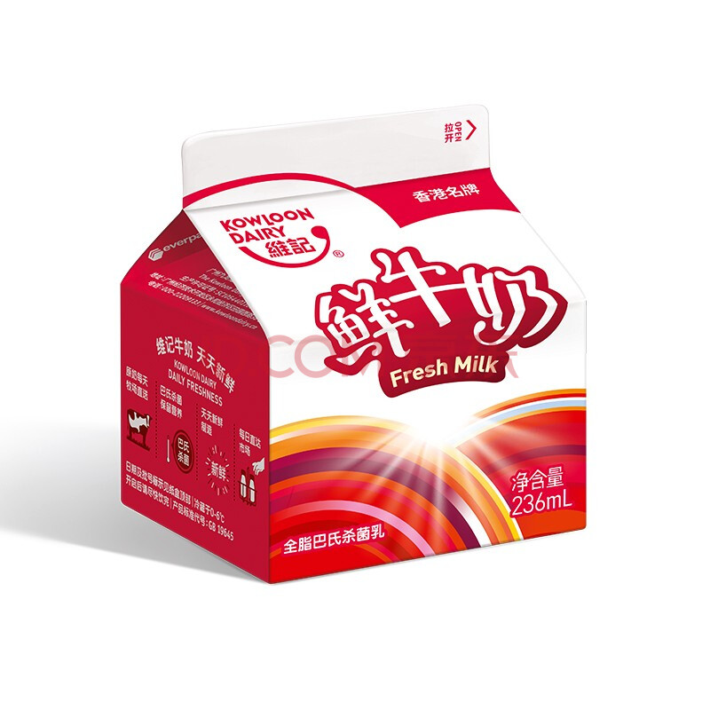 商品相册:维记 巴氏杀菌 236ml×4盒 鲜奶鲜牛奶第1张/共8