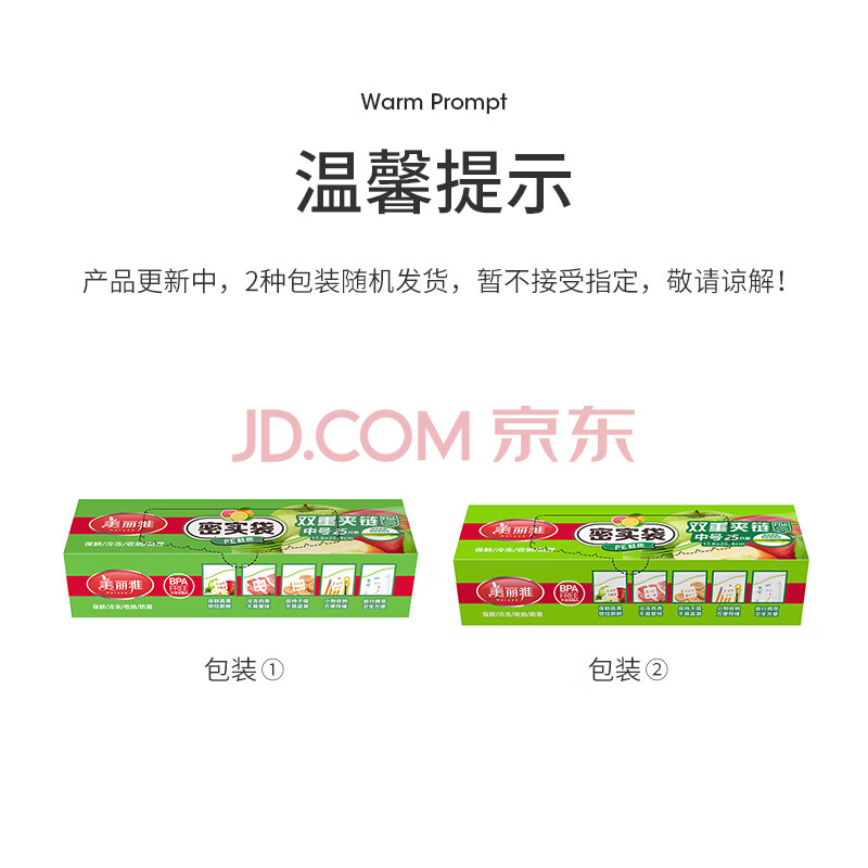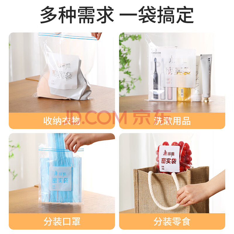 商品相册:美丽雅自封袋25只 食品密封袋中号储物收纳防尘一次性冰箱分装保鲜袋第