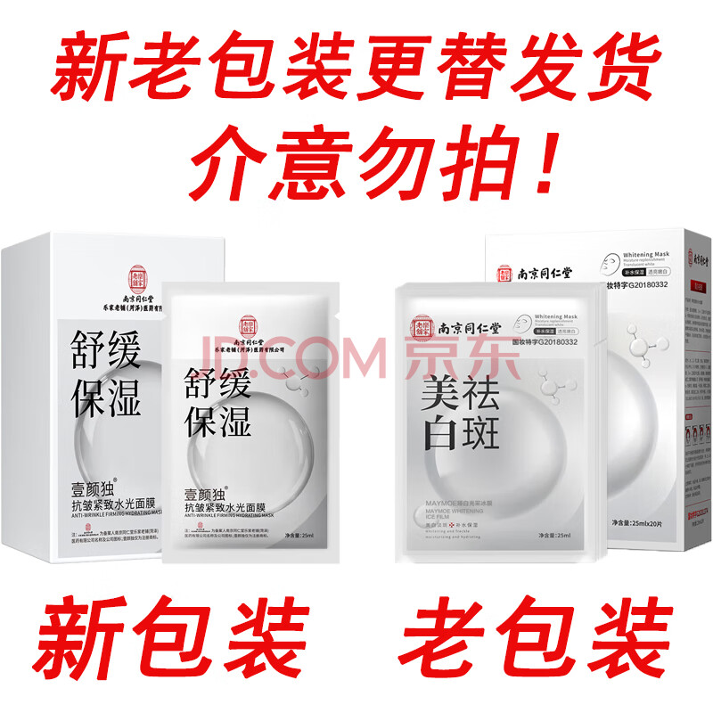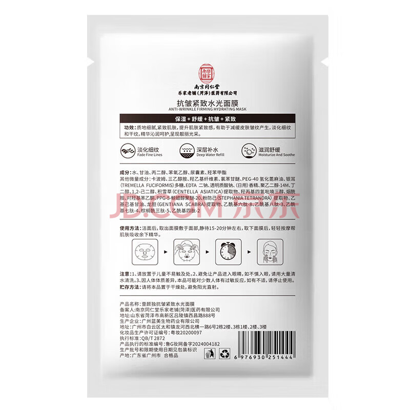 商品相册:南京同仁堂面膜抗皱紧致补水保湿细化淡纹去黄亮肤色暗沉男女士20片/盒七夕第