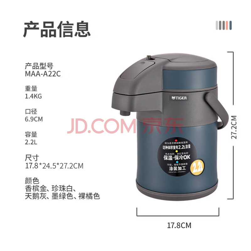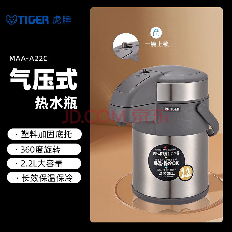 商品相册:虎牌(TIGER)保温壶气压式热水瓶MAA-A22C-TG 2.2L 天鹅灰第