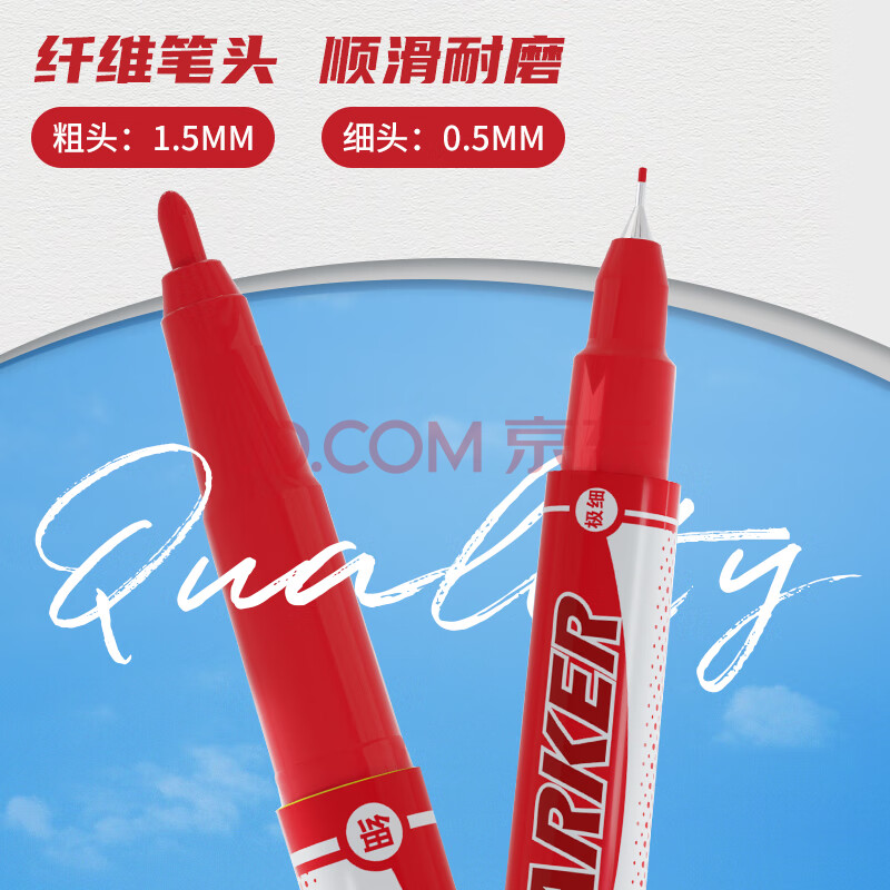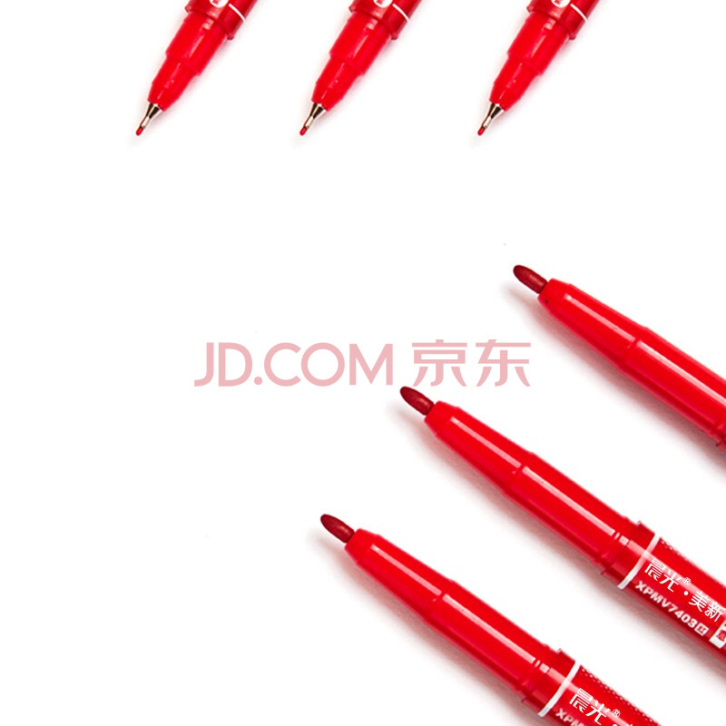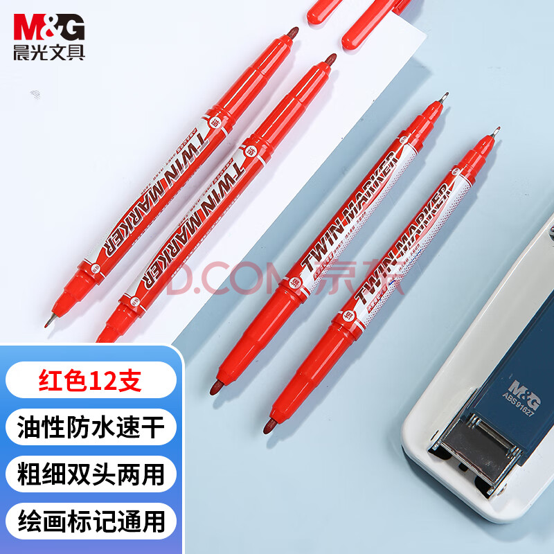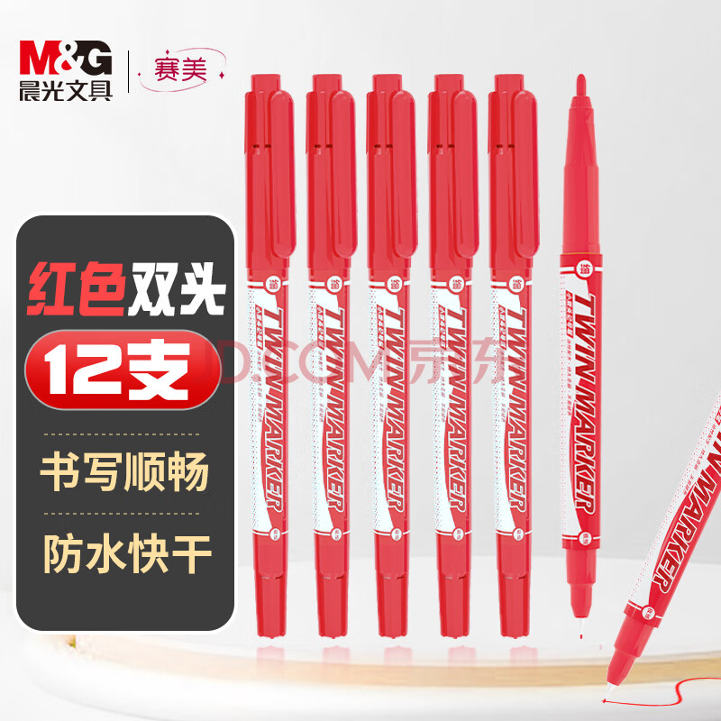 商品相册:晨光文具 红色粗细双头物流笔记号笔 防水马克笔油性笔 儿童学生勾线笔 办公用品12支XPMV7403第