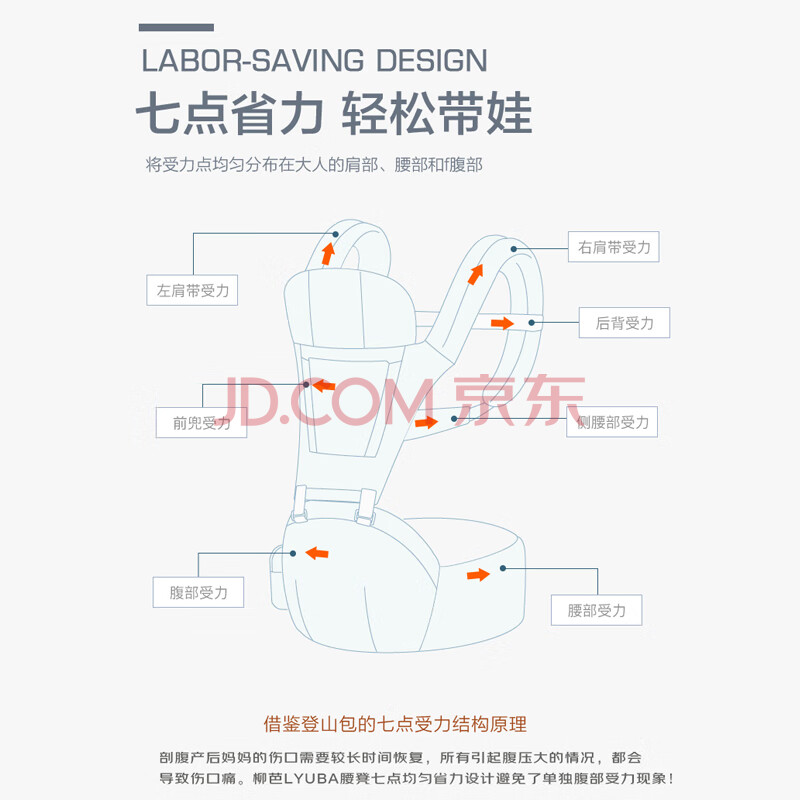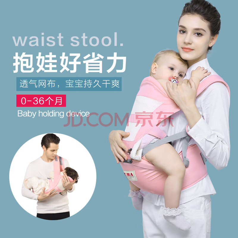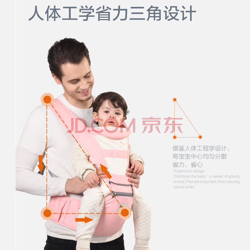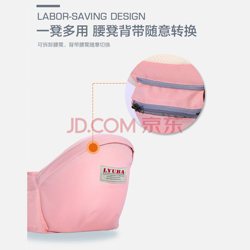 商品相册:柳芭 LYUBA腰凳婴儿背带前抱式抱娃神器多功能坐凳防震背婴带HYA2031樱花粉第