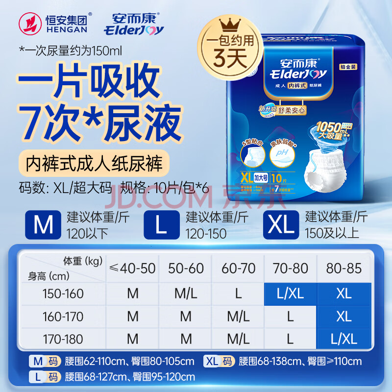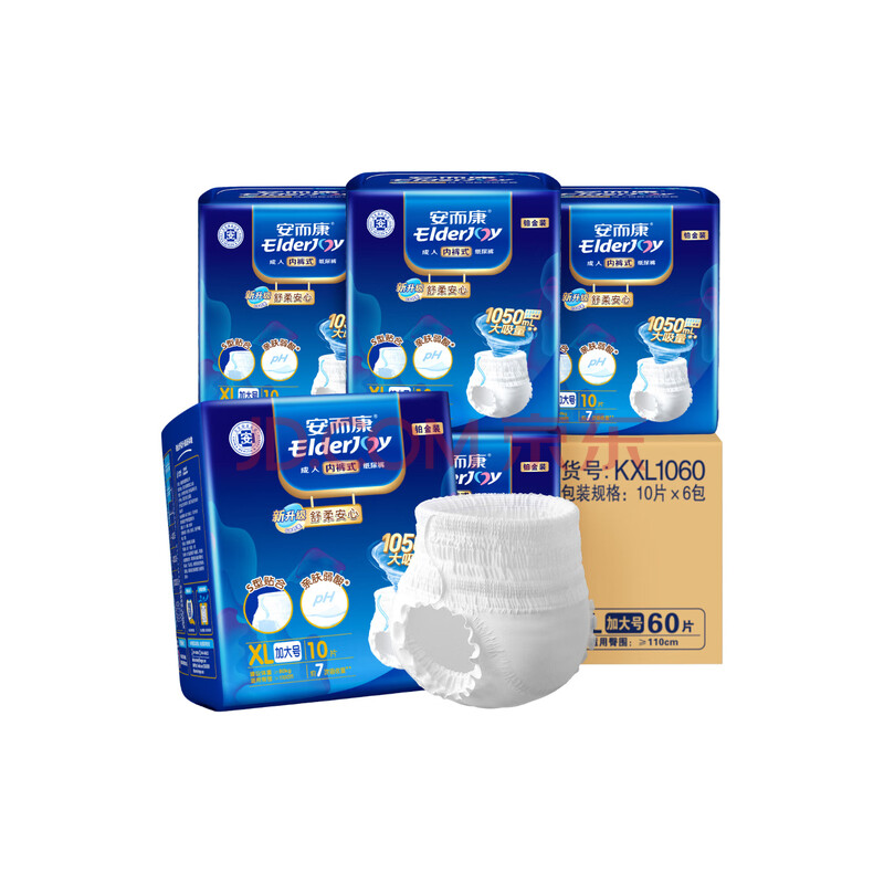 商品相册:安而康(Elderjoy)舒柔安心成人拉拉裤XL60片腰围68-138内裤式成人纸尿裤老人亲肤第
