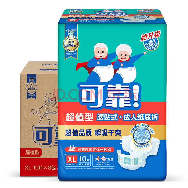 商品相册:可靠(COCO)超值型成人纸尿裤XL80片(臀围≥110cm)加大码老年人孕产妇尿不湿第1张/共9