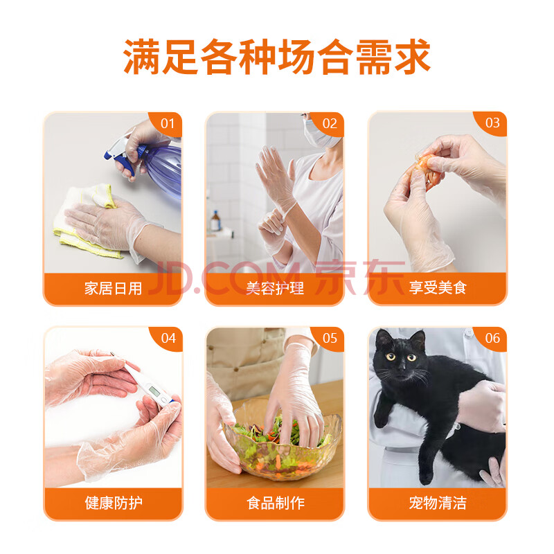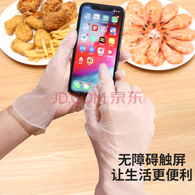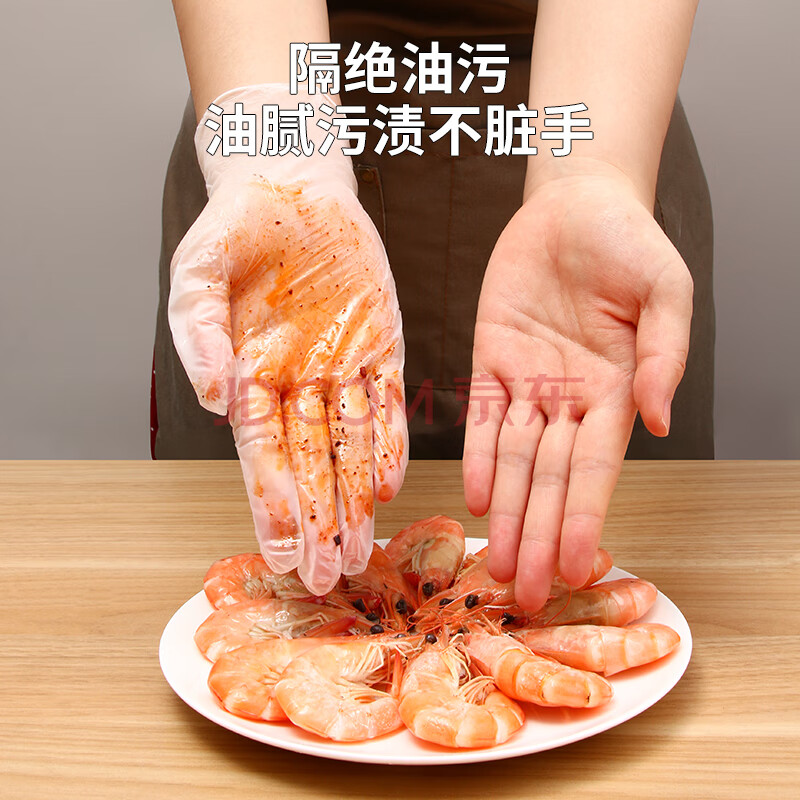 商品相册:优奥一次性手套PVC食品级加厚实验美容烘焙餐饮厨房清洁家用100只L号第