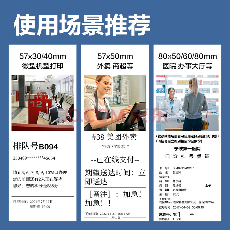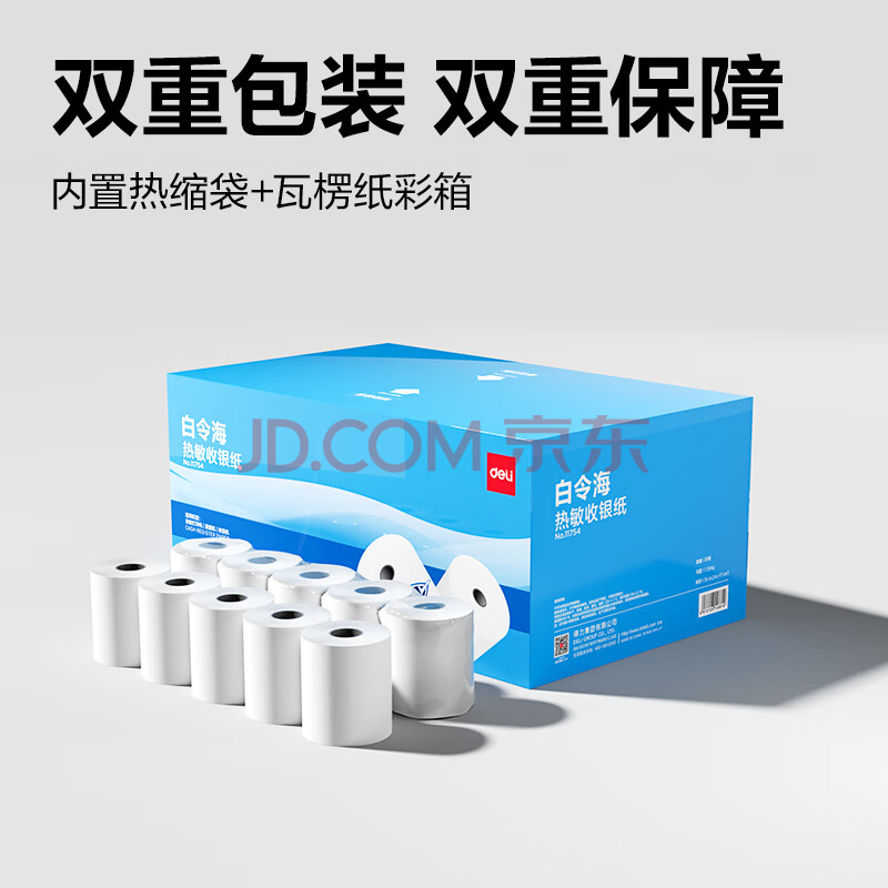 商品相册:得力(deli)80*80型44米*30卷 白令海热敏收银纸 京东外卖餐饮后厨小票纸 11754【适配80mm机器 801P等】第