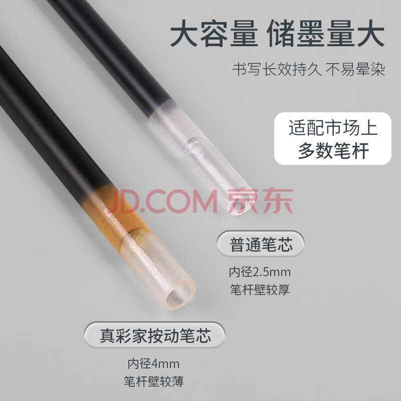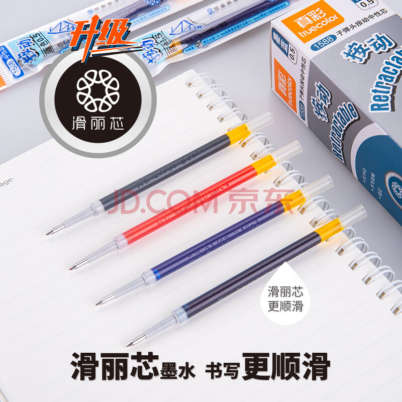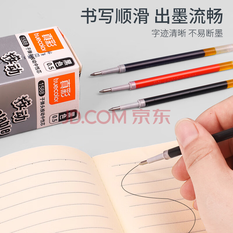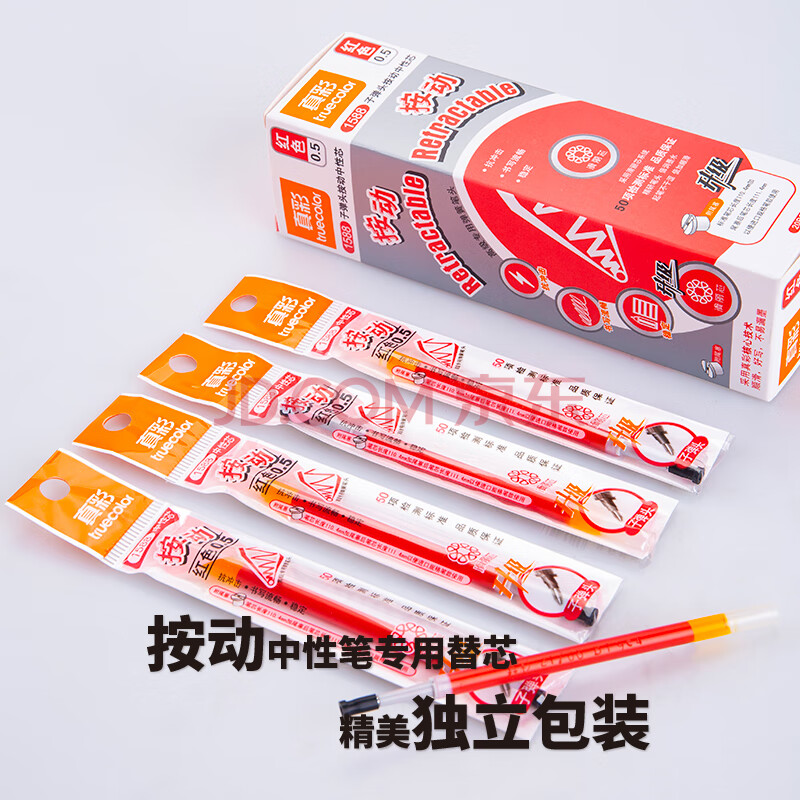 商品相册:真彩(TRUECOLOR)1588滑丽芯0.5mm红色按动中性笔通用笔芯办公子弹头签字笔学生刷题水笔替芯适用斑马百乐 20支/盒第