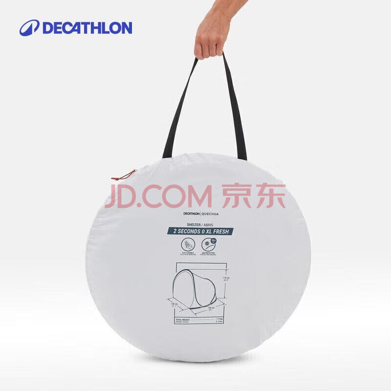 商品相册:迪卡侬帐篷简易露营野餐快开科技户外遮阳防风雨防晒白色2人-4492204第