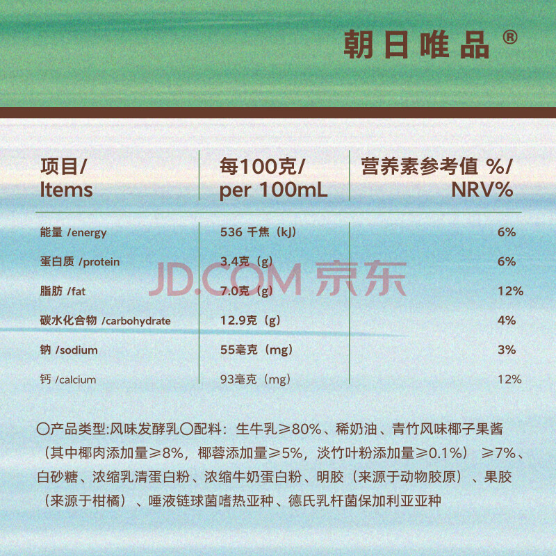 商品相册:朝日唯品青竹风味生椰酪乳100g*4杯 低温酸奶 风味发酵乳酸牛奶第