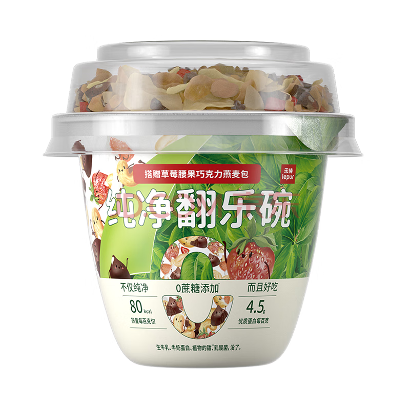 商品相册:乐纯(LePur')翻乐碗 0蔗糖风味发酵乳 草莓腰果味谷物酸奶碗150g*3 营养代餐第