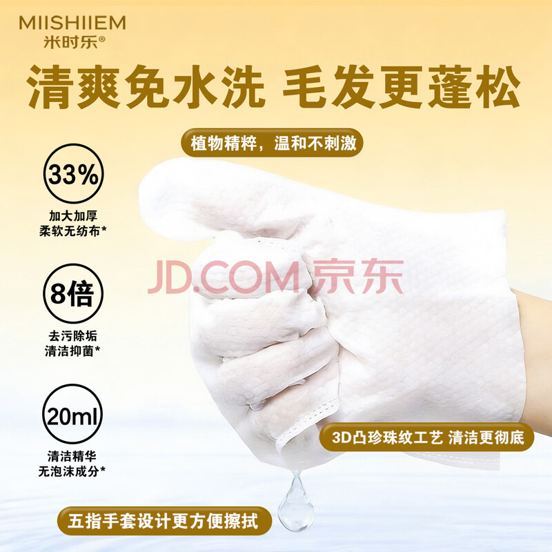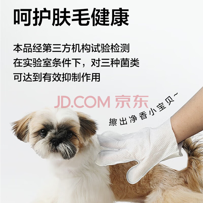 商品相册:MIISHIIEM英国米时乐宠物湿巾免洗手套6片*2包猫狗除菌除臭干洗全身清洁第