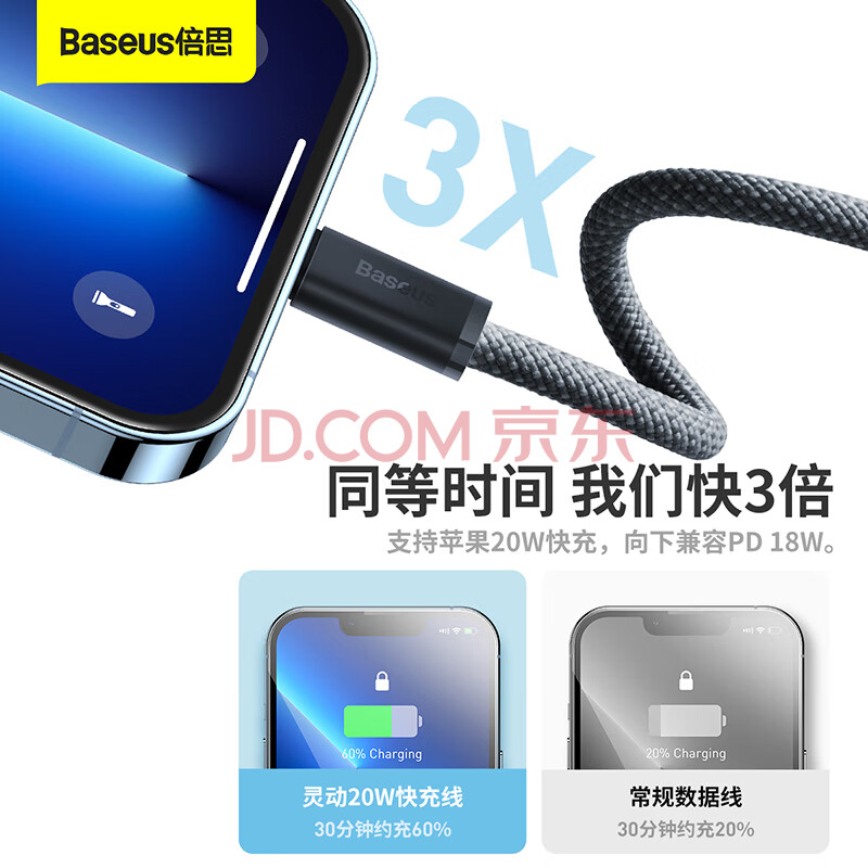 商品相册:倍思苹果数据线PD20/18W快充线Type-c to lightning充电线适用iPhone14/13Pro Max/12/11手机车载2米第