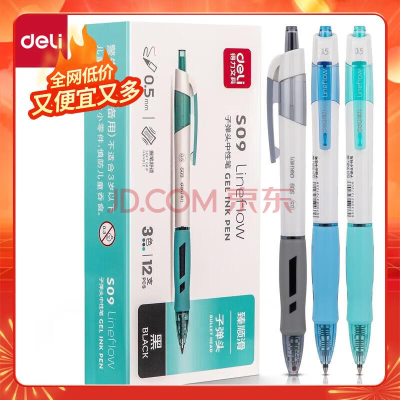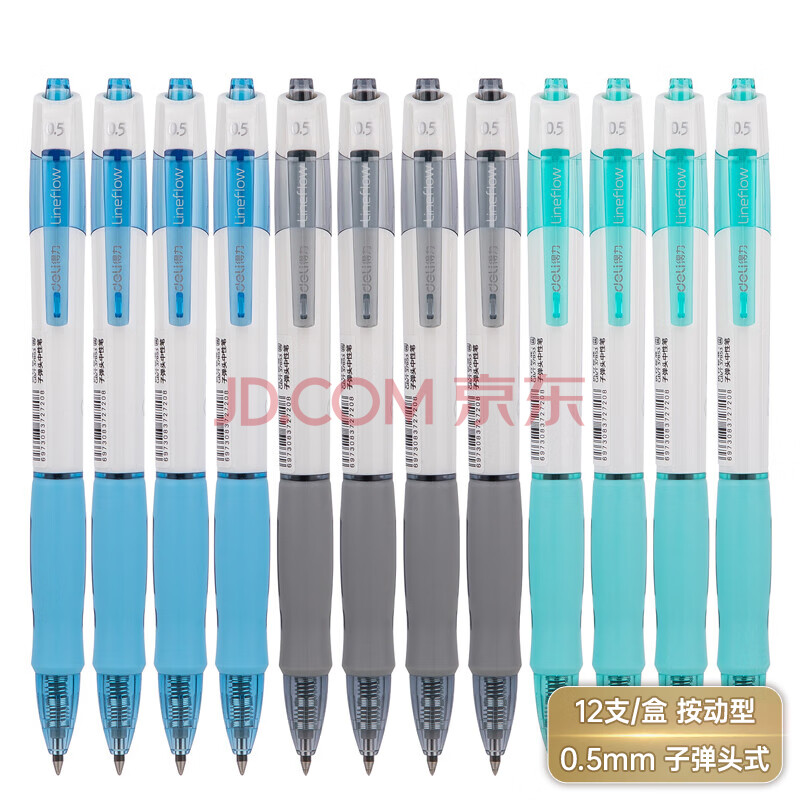 商品相册:得力(deli)【热门商品】臻顺滑中性笔签字笔 0.5mm子弹头按动笔水笔 时尚办公用品 黑色 12支/盒S09第