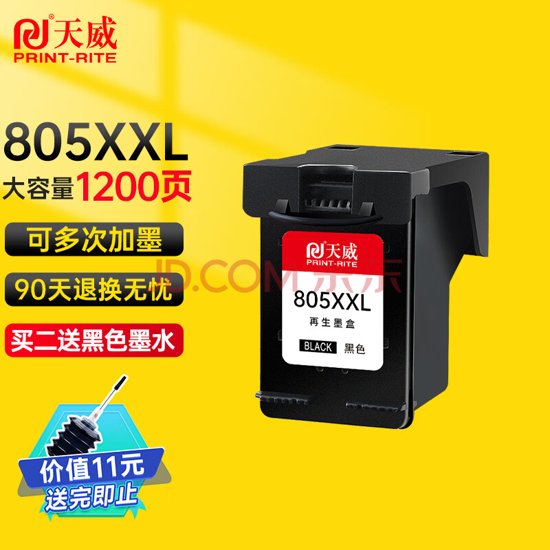 商品相册:天威 805XXL黑色墨盒升级 适用惠普HP Deskjet1210 1212 2330 2332 2720 2721 2722 2723 2729打印机墨盒第