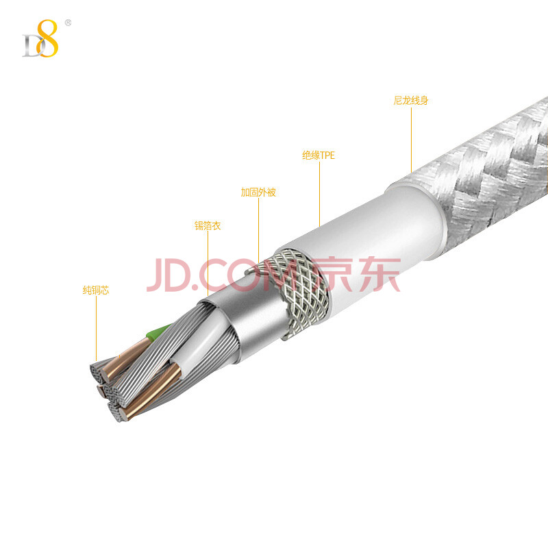 商品相册:D8 MFi认证 苹果数据线 通用iPhone12/11/XR/X/SE2/9/8/7/6Plus/ipad充电线 手机USB充电器电源线 银色1米第
