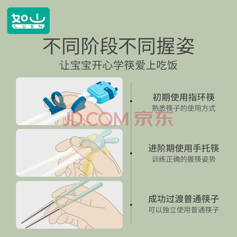 商品相册:如山儿童筷子训练筷2~3岁练习家用吃饭筷二段宝宝学习筷 薄荷绿第