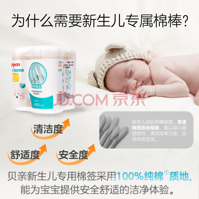 商品相册:贝亲(Pigeon)婴儿棉签 细轴棉棒 耳孔清洁棉签 肚脐清洁棉签 180支装 KA01第
