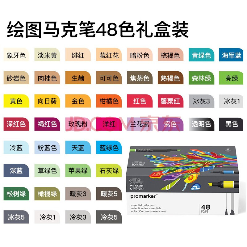 商品相册:温莎牛顿【弗洛伊德同品牌】双头马克笔专业绘图马克笔礼盒48色水彩笔美育第