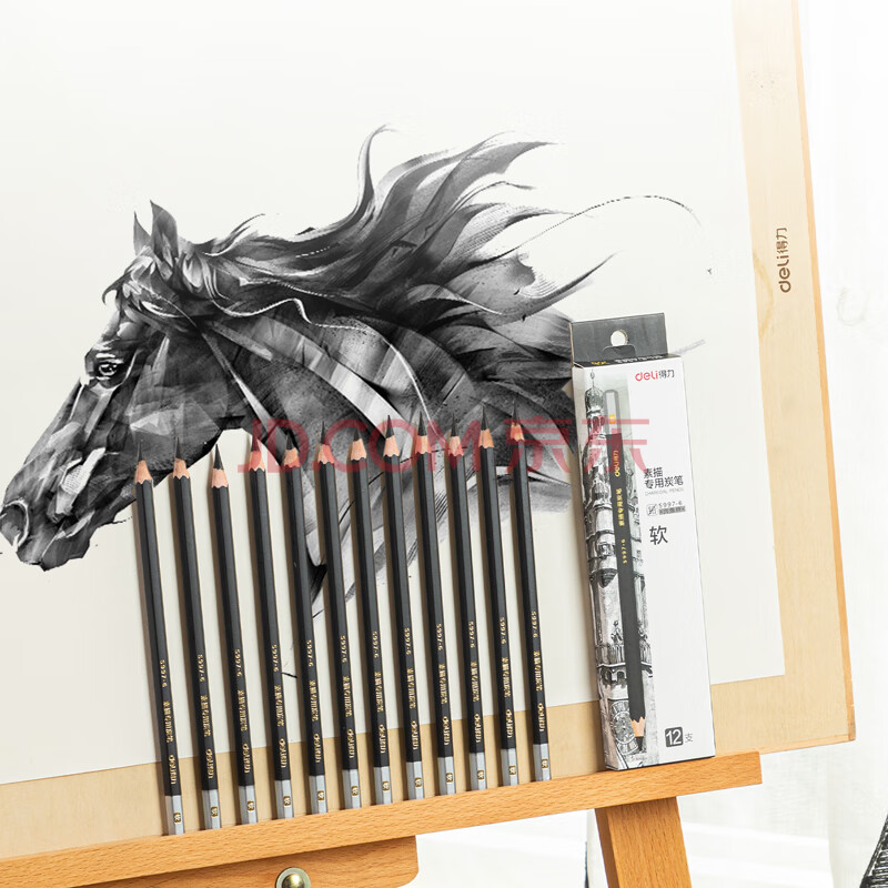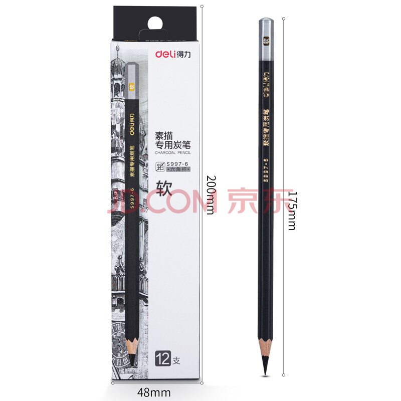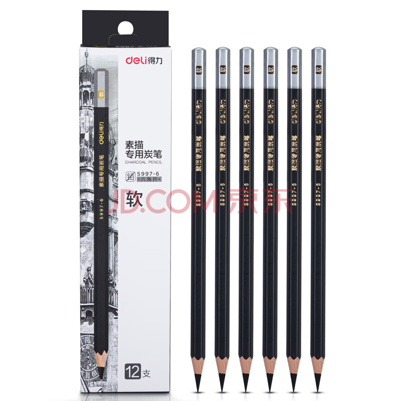 商品相册:得力(deli)12支/盒软炭素描炭笔初学者碳笔绘画美术生专用工具12支/盒软炭S997-6第