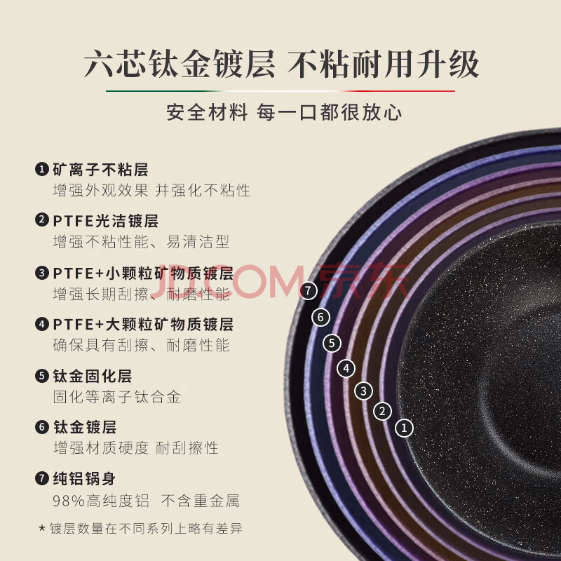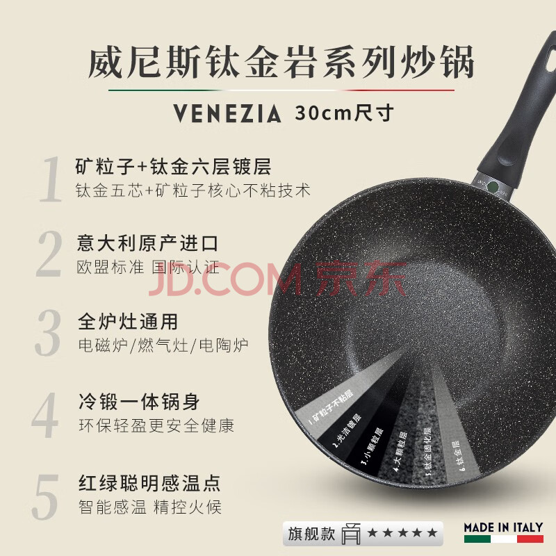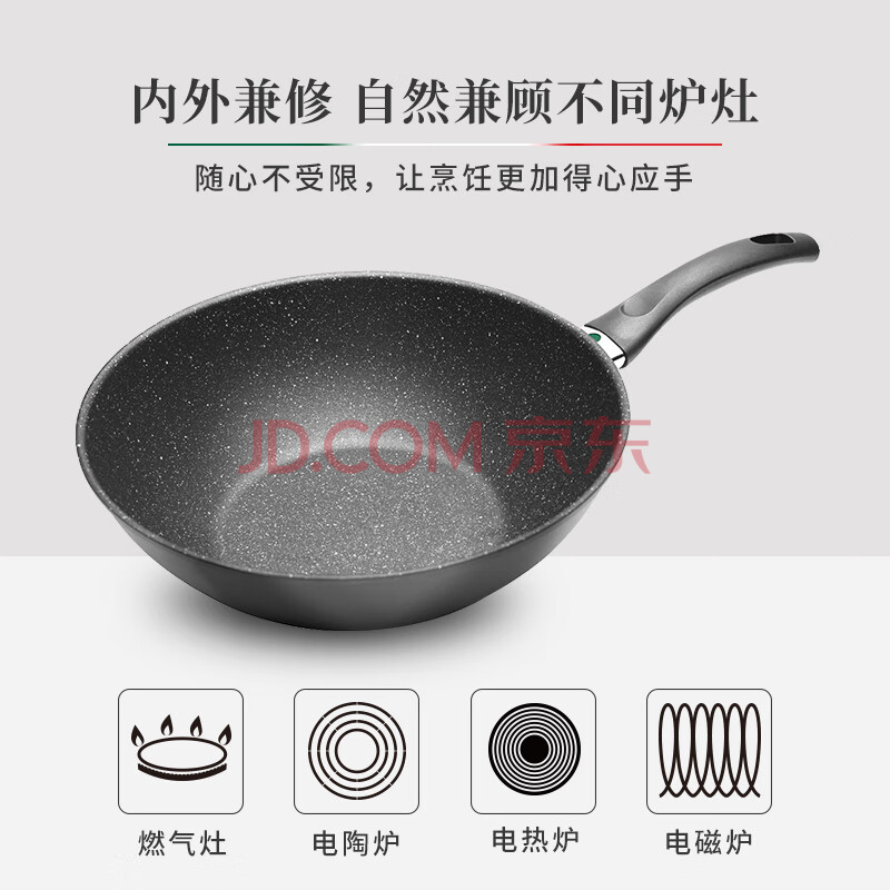 商品相册:巴拉利尼(BALLARINI)不粘锅六芯有钛进口炒锅中式炒菜锅电磁炉通用锅威尼斯钛金岩30cm第