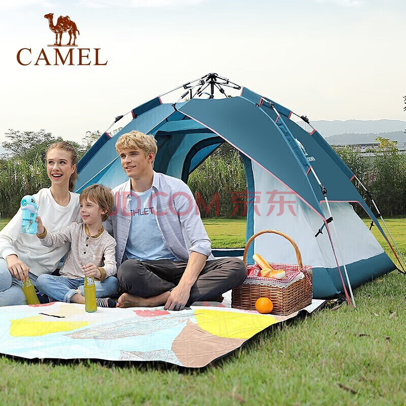 商品相册:骆驼(CAMEL)户外液压帐篷全自动弹开野餐涂银防晒防雨露营帐A111-2湛蓝第