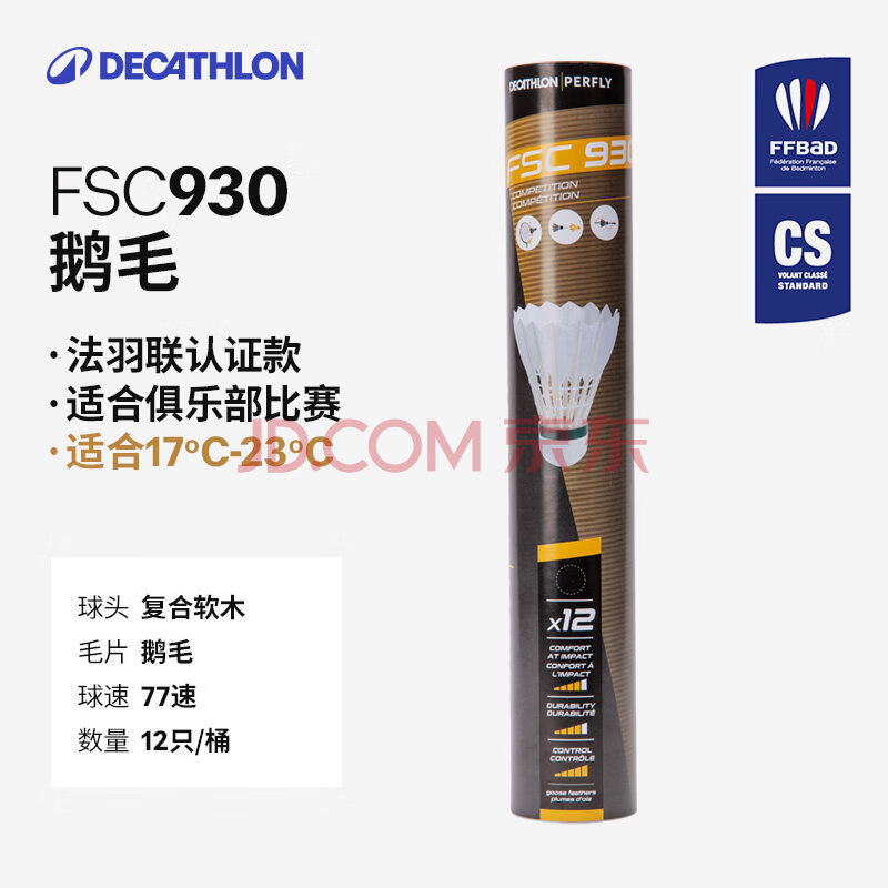 商品相册:迪卡侬羽毛球鹅毛比赛训练用球12只装球PERFLYFSC930鹅毛77速 2396683第