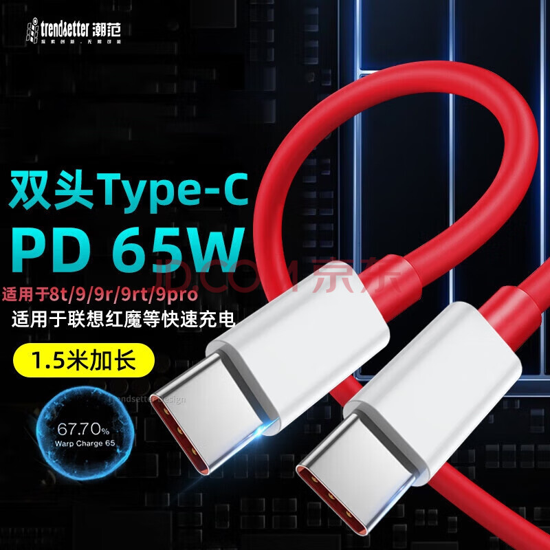 商品相册:trendsetter适用于一加数据线65W闪充warp快充1+8t/9/9r/9rt/9pro手机充电线1.5米加长PD快充线联想小米通用第