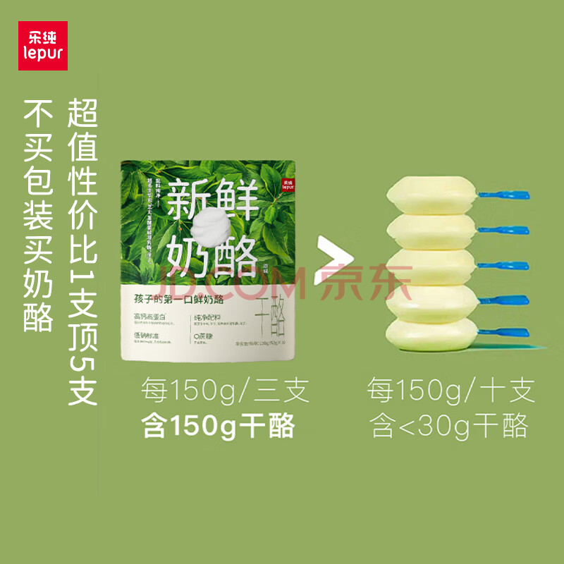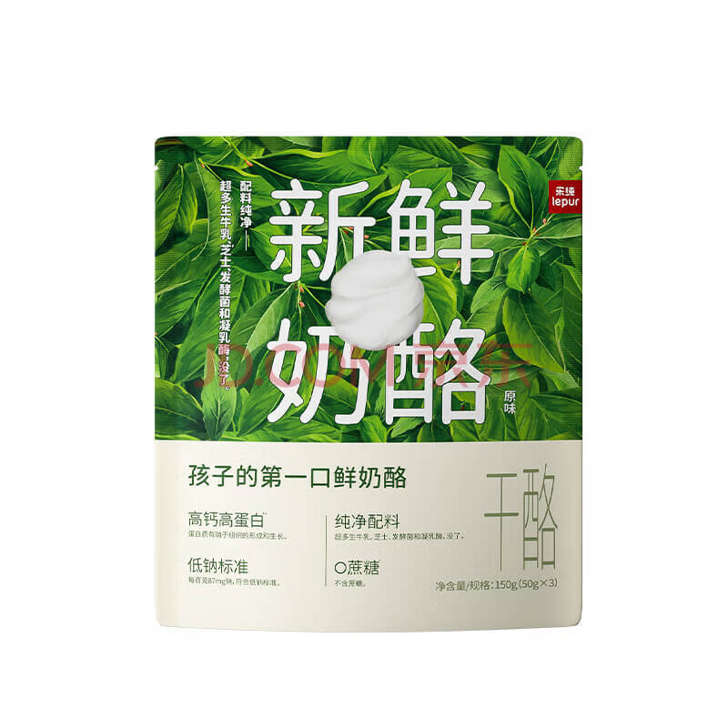 商品相册:乐纯(LePur')新鲜奶酪 低钠0蔗糖高蛋白 原味干酪50g*3袋 儿童营养零食第