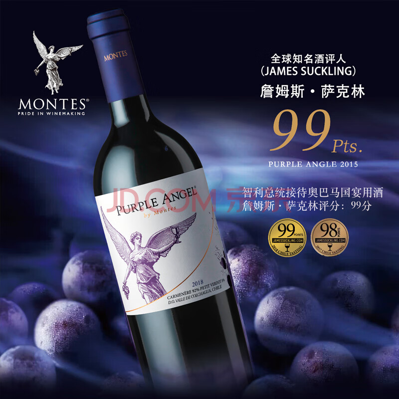 商品相册:蒙特斯Montes 紫天使 干红葡萄酒 整箱装750ml*6瓶第1张/共7