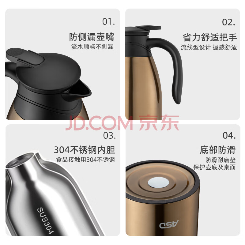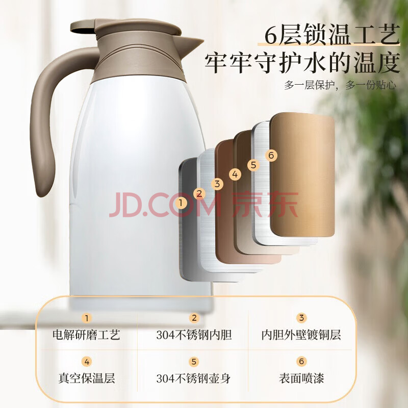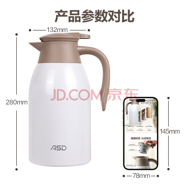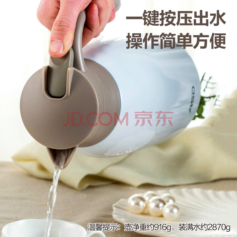 商品相册:爱仕达保温壶2L家用不锈钢内胆暖水壶大容量热水瓶纯净白RWS20P4WG-W第