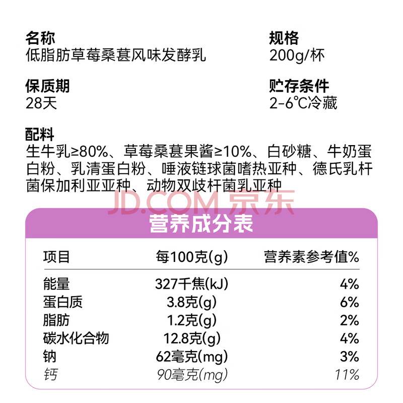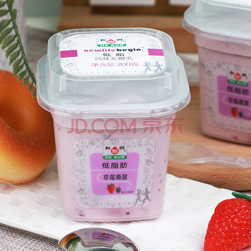 商品相册:和润 低脂肪草莓桑葚果粒 低温酸奶酸牛奶 风味发酵乳 200g*3杯第