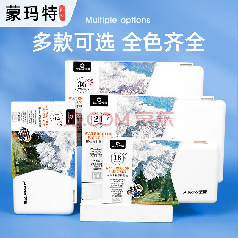 商品相册:蒙玛特艺蔻系列12色水彩固体颜料美术学生考试级工具套装块状盒调色绘画进阶套装SX-ATOD-WP1205-7jt第