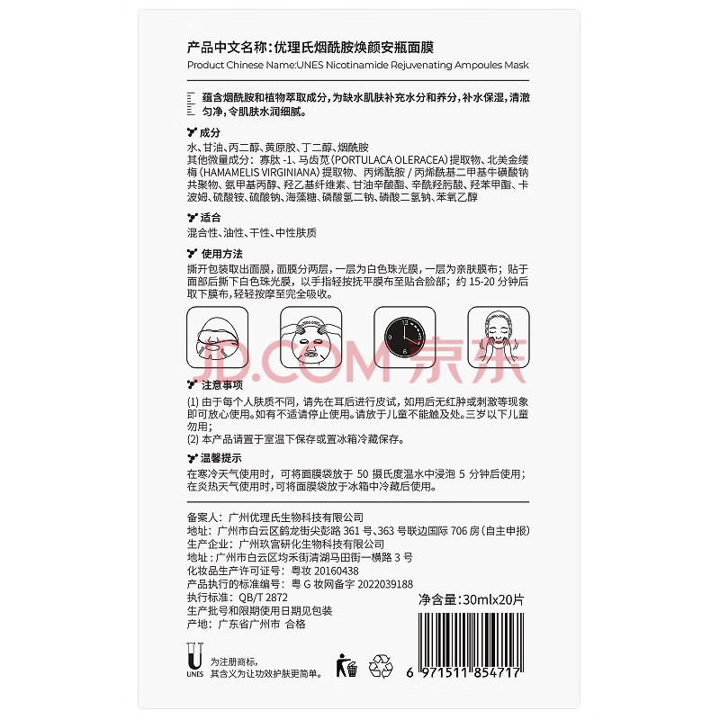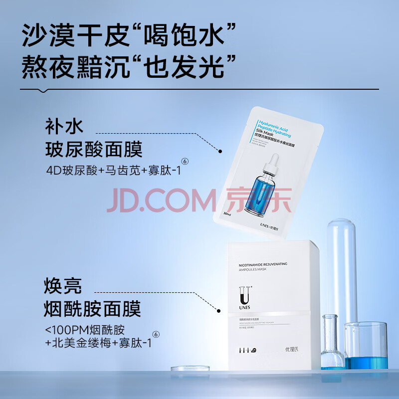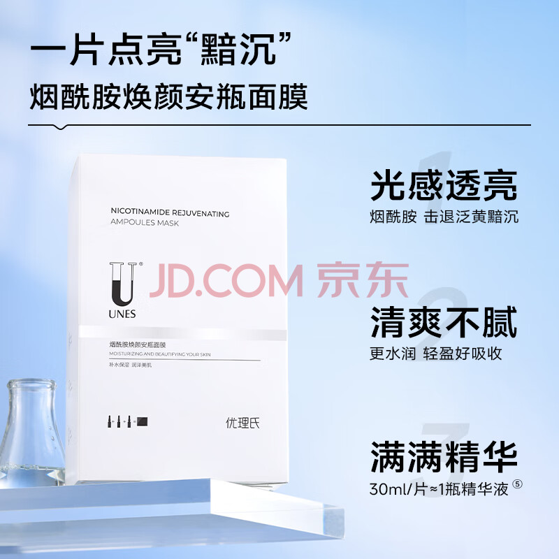 商品相册:优理氏补水玻尿酸保湿面膜烟酰胺提亮肤色减黄气暗沉紧致送男女士礼物第