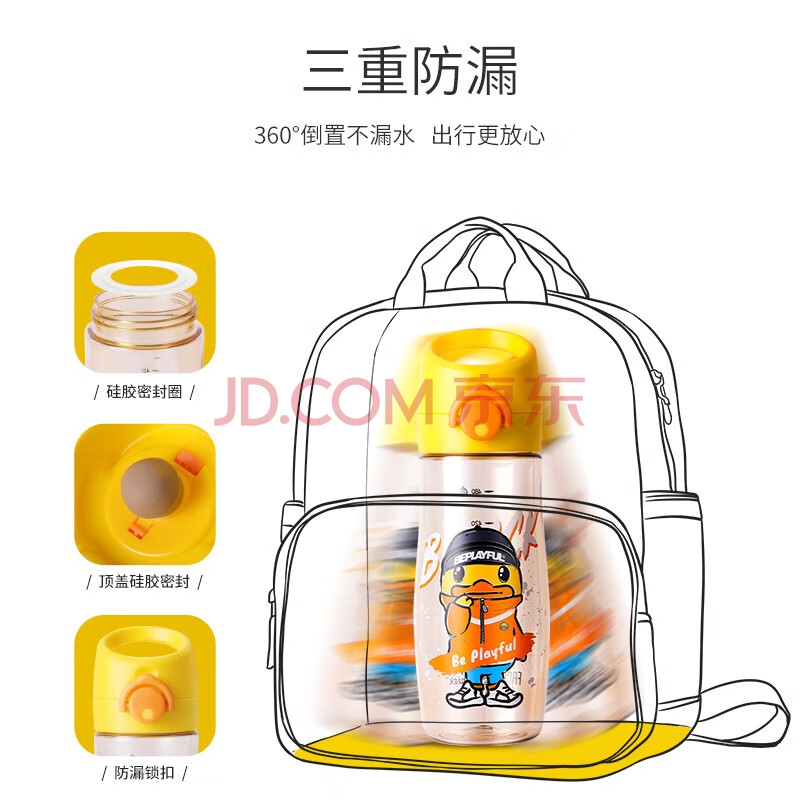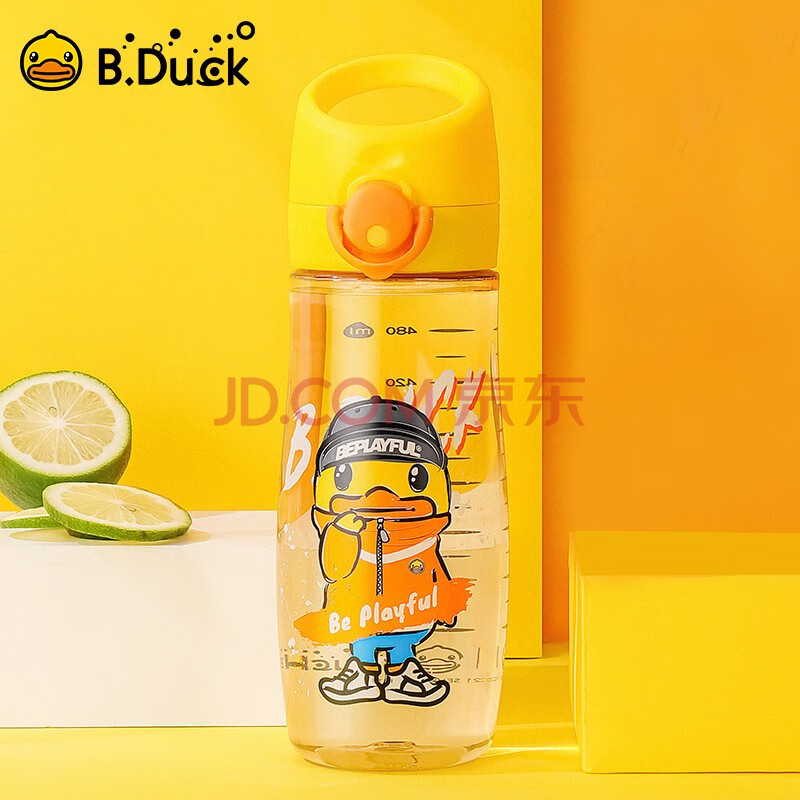 商品相册:B.Duck小黄鸭运动便携水杯儿童防漏直饮杯学生户外大容量手提水壶480ml第
