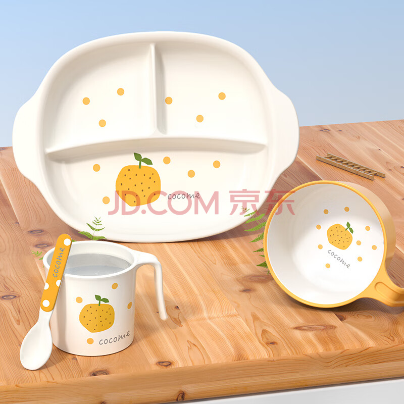商品相册:可可萌(COCOME)儿童餐具套装宝宝辅食碗分格盘勺子婴儿水杯仿瓷感四件套礼盒橙色第