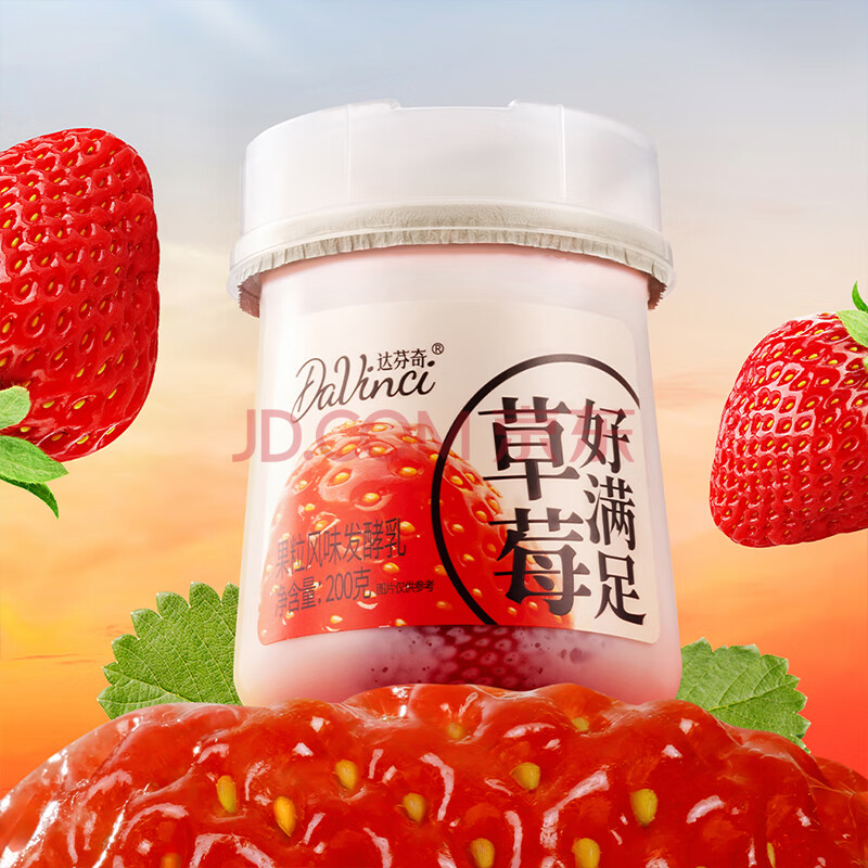 商品相册:达芬奇(DAVINCI)好满足整颗草莓 200g*3杯 低温酸奶颗颗大果粒 风味发酵乳第