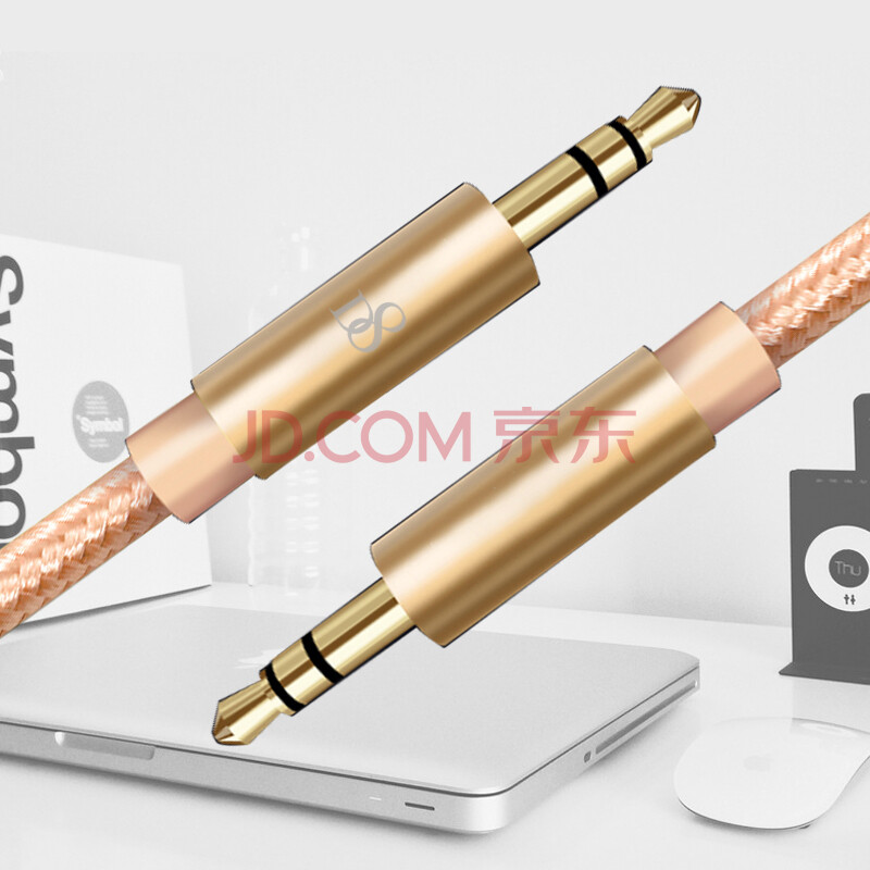商品相册:D8 音频线转接头音响蓝牙接收器4.1音频车载aux适配器转音箱耳机喇叭线适用手机平板功放/MP3/DVD编织 金色第
