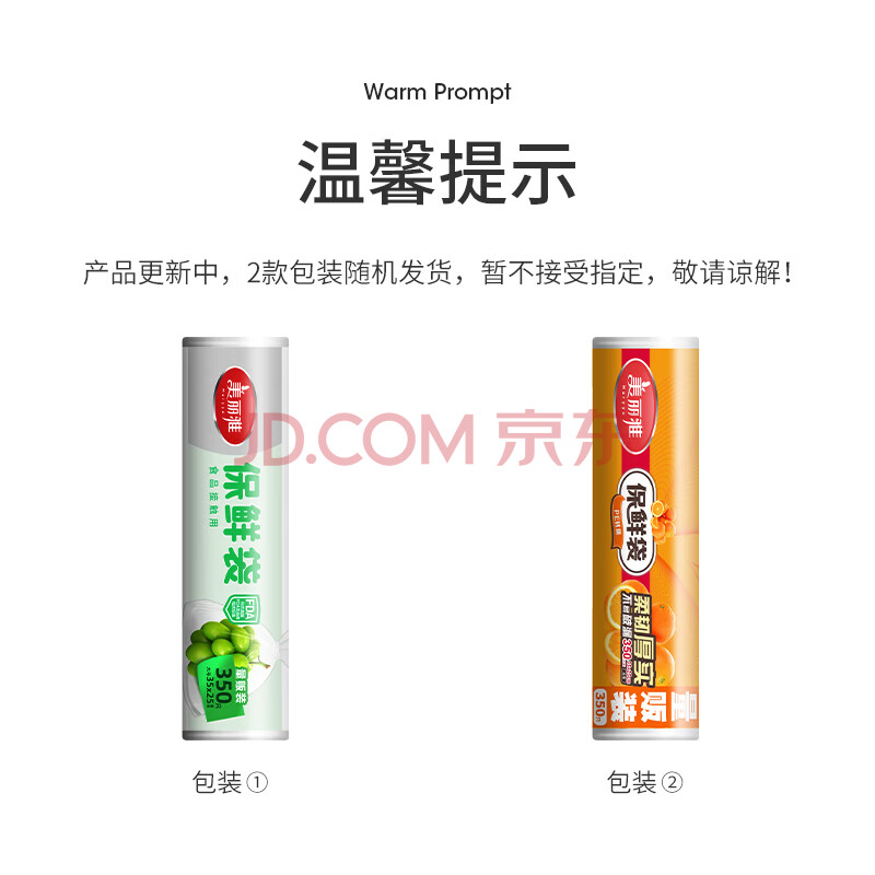 商品相册:美丽雅加厚食品级保鲜袋大号350只点断连卷式家用食品分装塑料袋第
