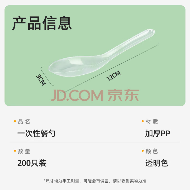 商品相册:特美居(temeiju)一次性勺子食品用塑料汤勺外卖快餐打包冰粉小勺小调羹汤匙200支第