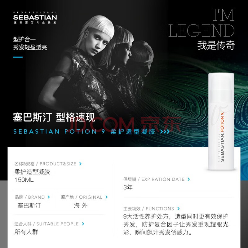 商品相册:塞巴斯汀(SEBASTIAN)9号柔护塑型啫喱膏水弹力素女卷发保湿护卷防毛躁固型发胶150ml第1张/共7