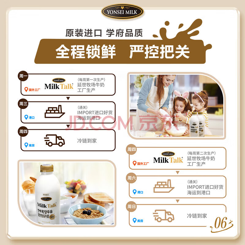 商品相册:伊利YONSEI MILK延世牧场 韩国原装进口 1L 全脂低温牛奶 1A级奶源第