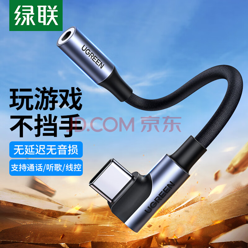 商品相册:绿联Type-C耳机转接头 USB-C转3.5mm弯头音频数据线耳机转换器适用于小米14/华为Mate40Pro/P50第