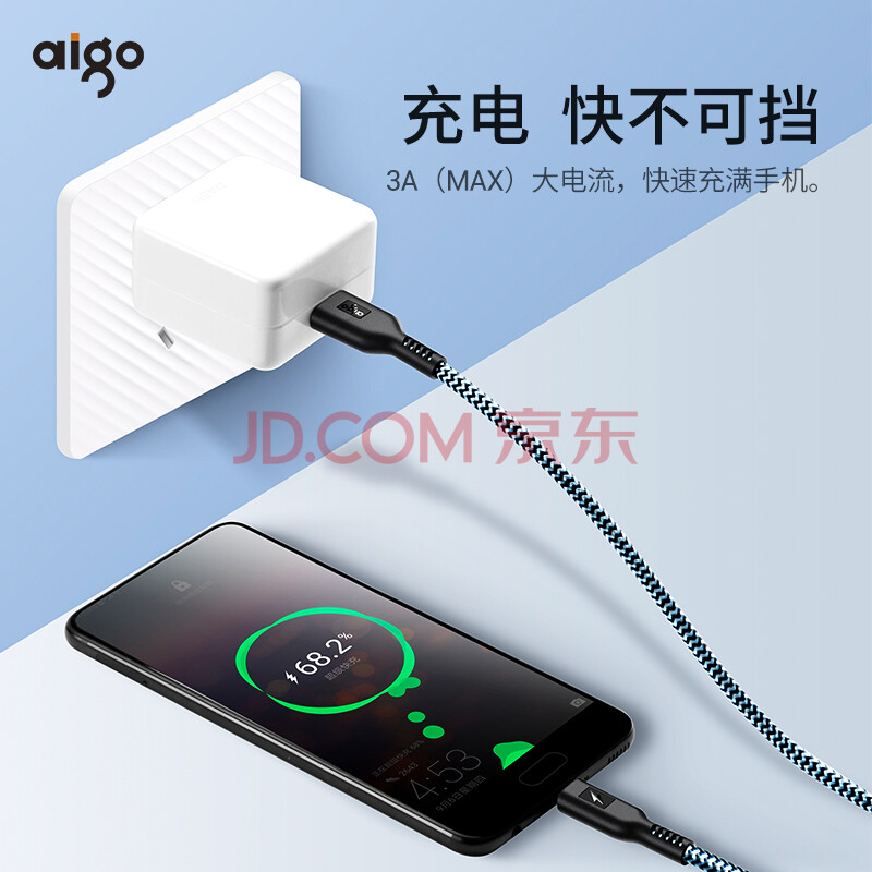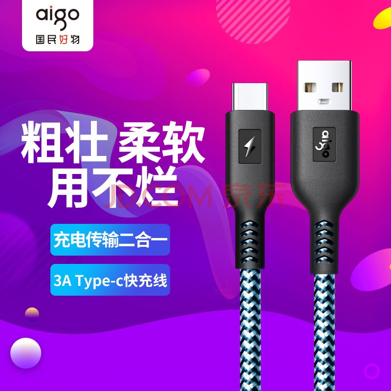 商品相册:aigo爱国者Type-c数据线华为3A快充手机线USB转PD电源线安卓小米/三星/荣耀vivo等手机1米编织线AL01第