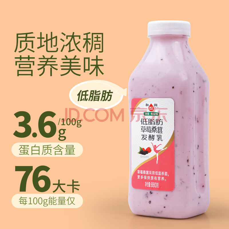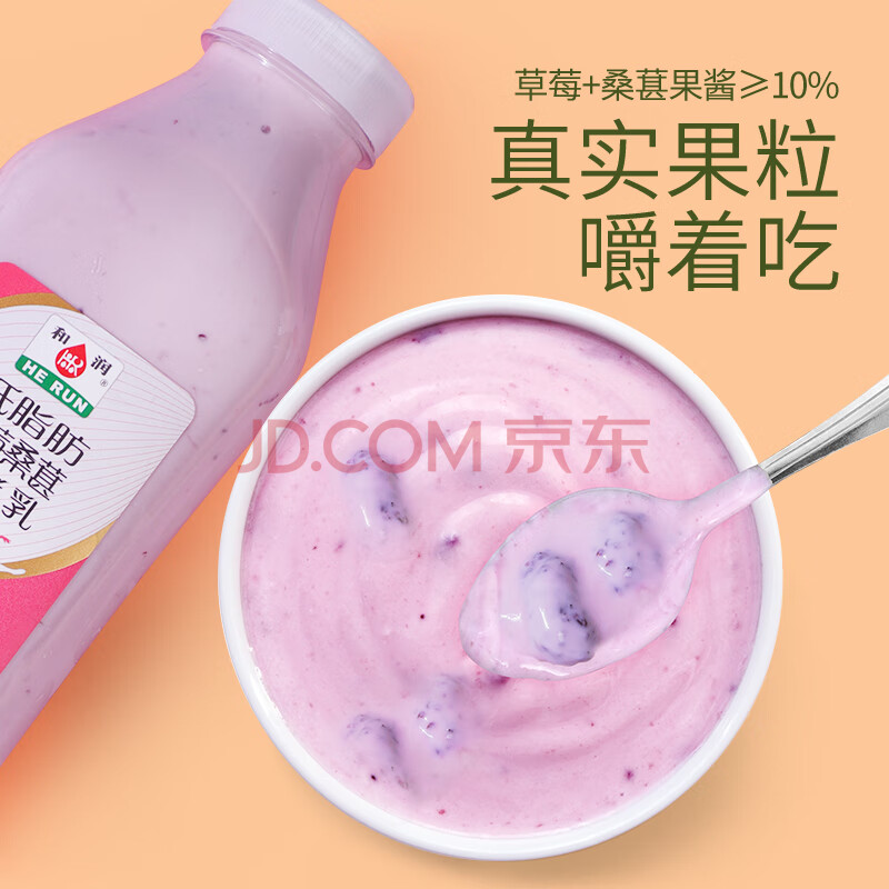 商品相册:和润 低脂肪草莓桑葚味880g 低温酸奶酸牛奶风味发酵乳 水果捞酸奶碗第